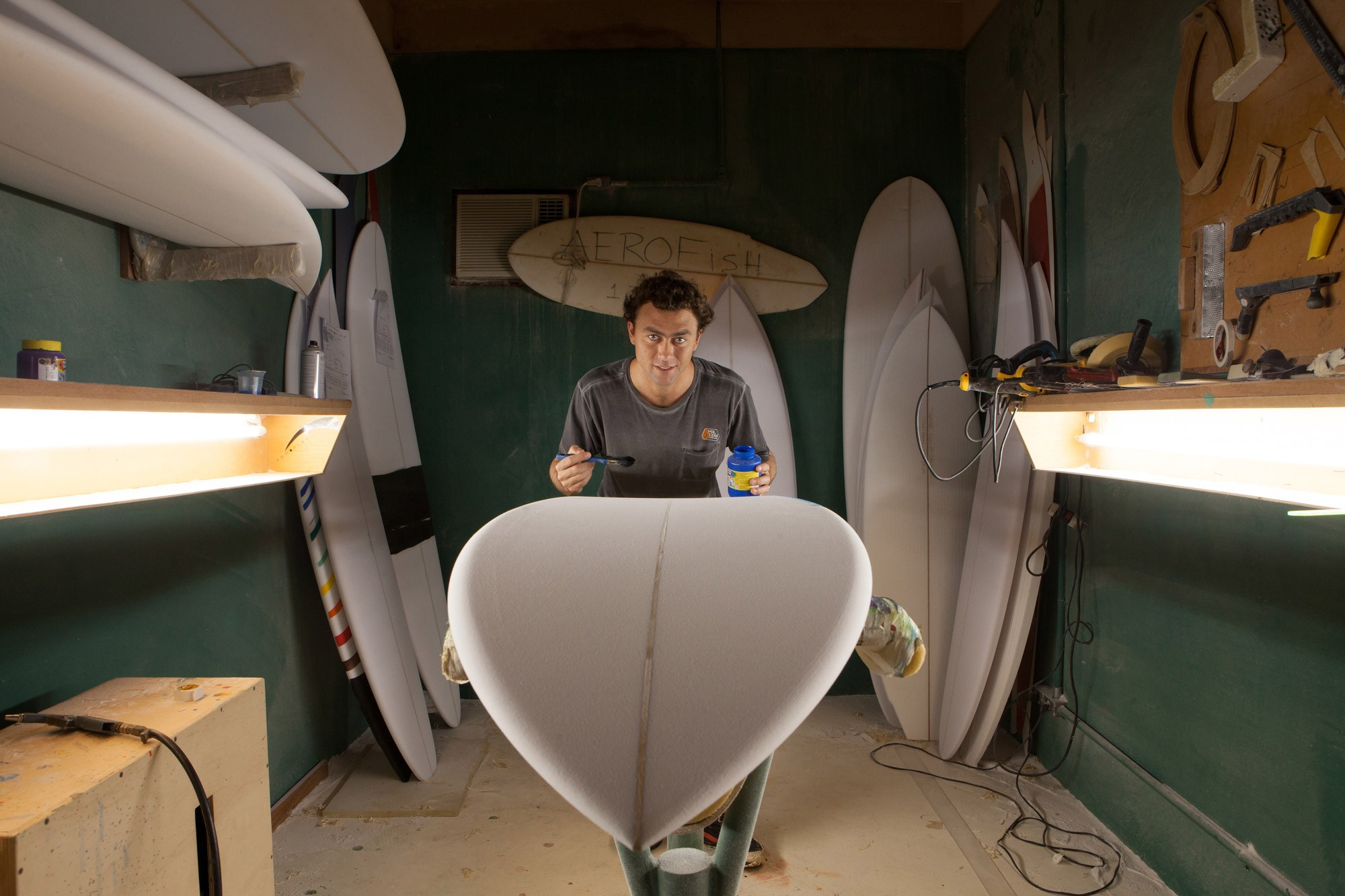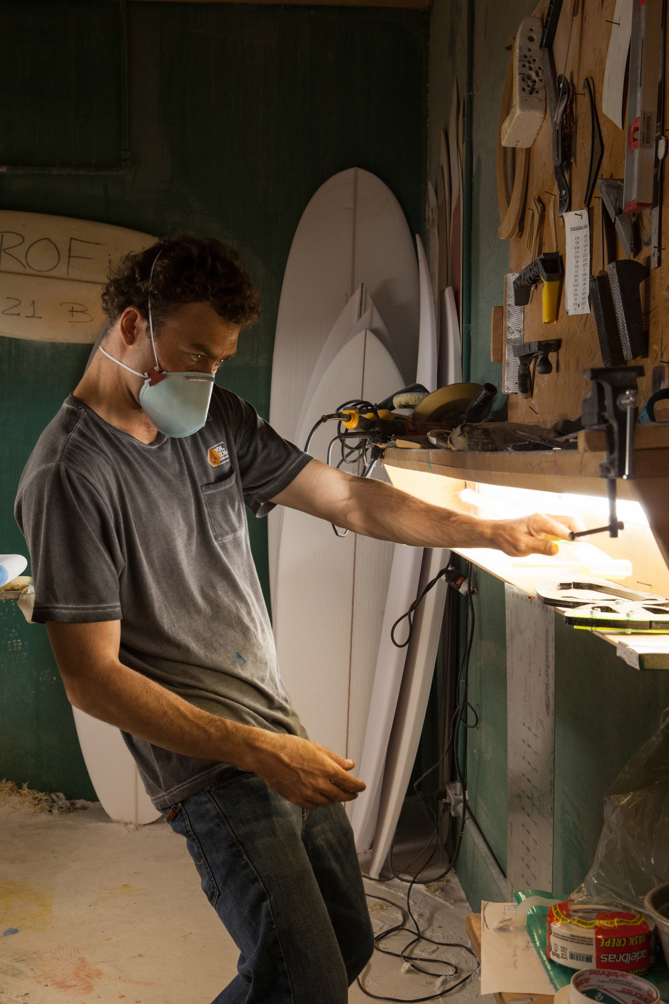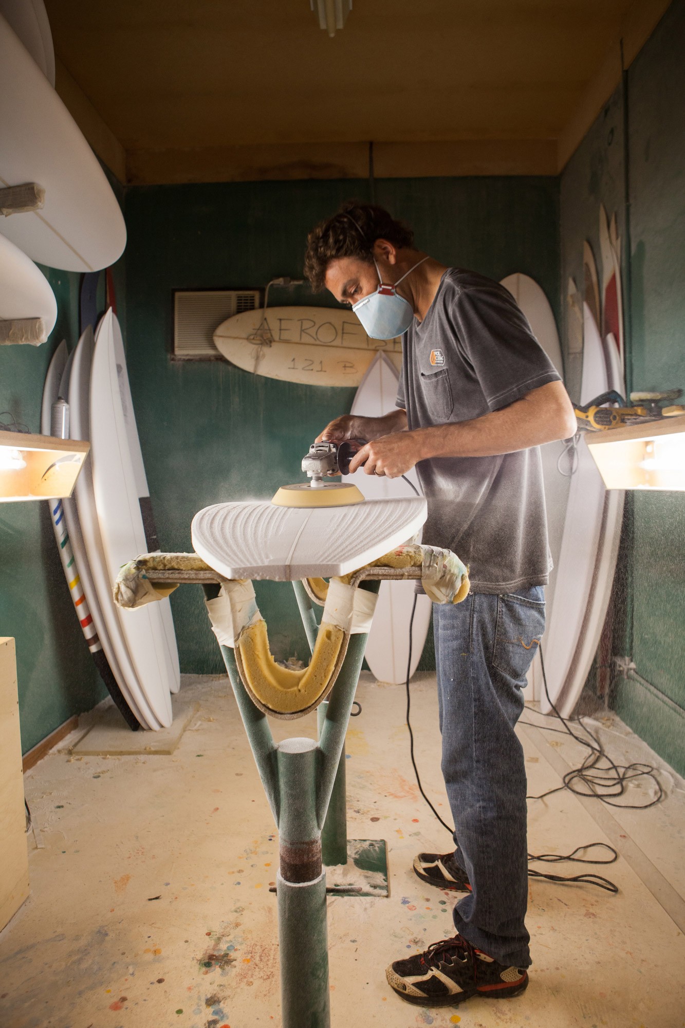 We followed the process of cutting materials, painting surfboards, and sales, capturing the authentic environment and person.