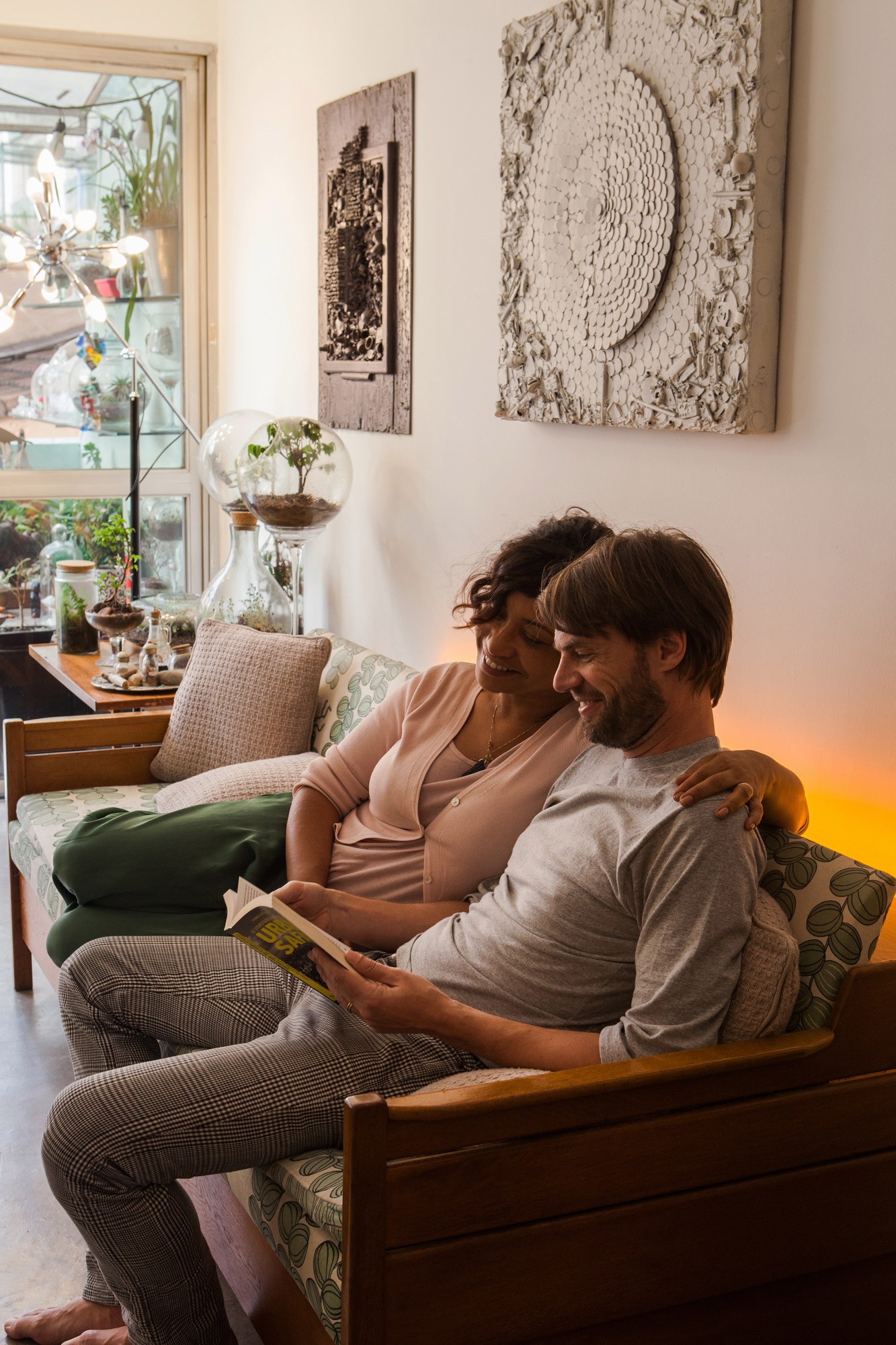 Smart Line: We photographed the house as it really is, without production or changes to the environment. The decor included antique items mixed with modernist pieces, many plants, books, and vinyl records.
