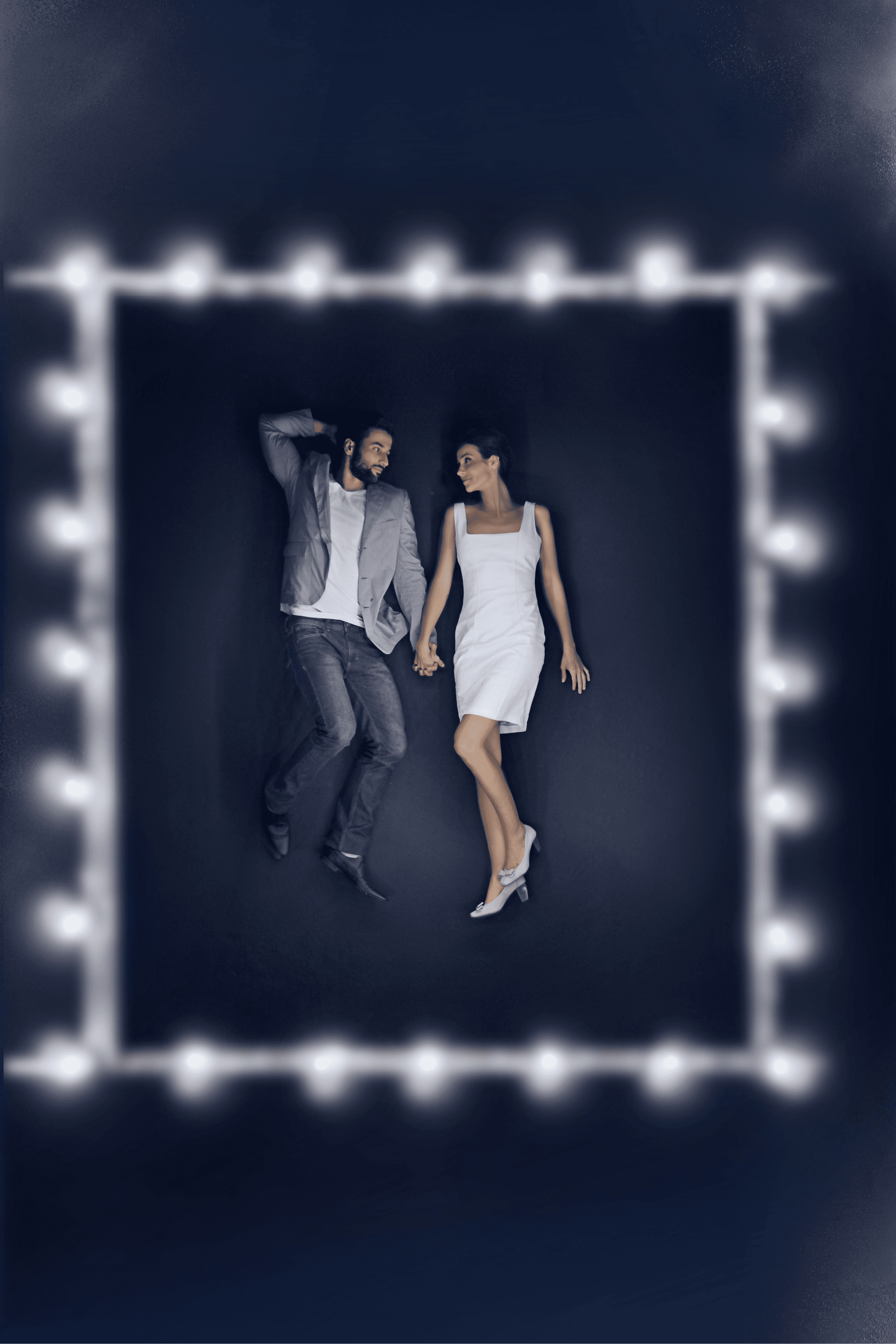The concept for this campaign was truly unique and captivating. Our goal was to depict a couple in their daily routines—listening to music, reading a book together on the sofa, relaxing in bed, and walking in the rain with an umbrella. These ordinary activities were set in an extraordinary, minimalist environment without furniture or traditional props. Inspired by the film Dogville, we created a setting where the rooms were outlined on the floor, with no doors or handles, allowing the actors to perform as if these elements existed.